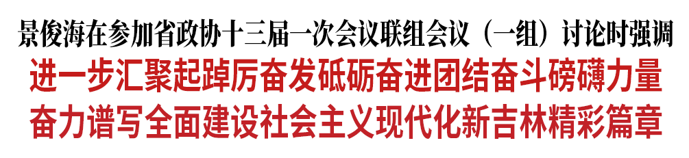 1月15日,省委书记景俊海参加省政协十三届一次会议联组会议(一组)讨论,听取政协委员意见建议。他强调,要坚持用习近平新时代中国特色社会主义思想凝心铸魂,紧扣党的二十大确定的各项目标任务,进一步汇聚起踔厉奋发、砥砺奋进、团结奋斗的磅礴力量,奋力谱写全面建设社会主义现代化新吉林精彩篇章。省政协党组书记朱国贤主持会议。