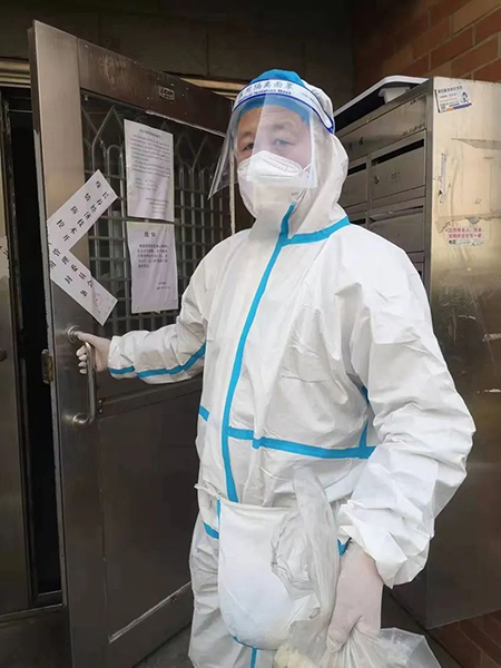 爬楼入户发放试剂盒、进入次密接全封闭楼栋进行消杀、协助核酸采样、维护核酸检测秩序、做社区和居民沟通协调的“纽带”……彭德超身着防护服穿梭在初春的小巷楼宇间,只要是自己能力范围内的,他都来者不拒。