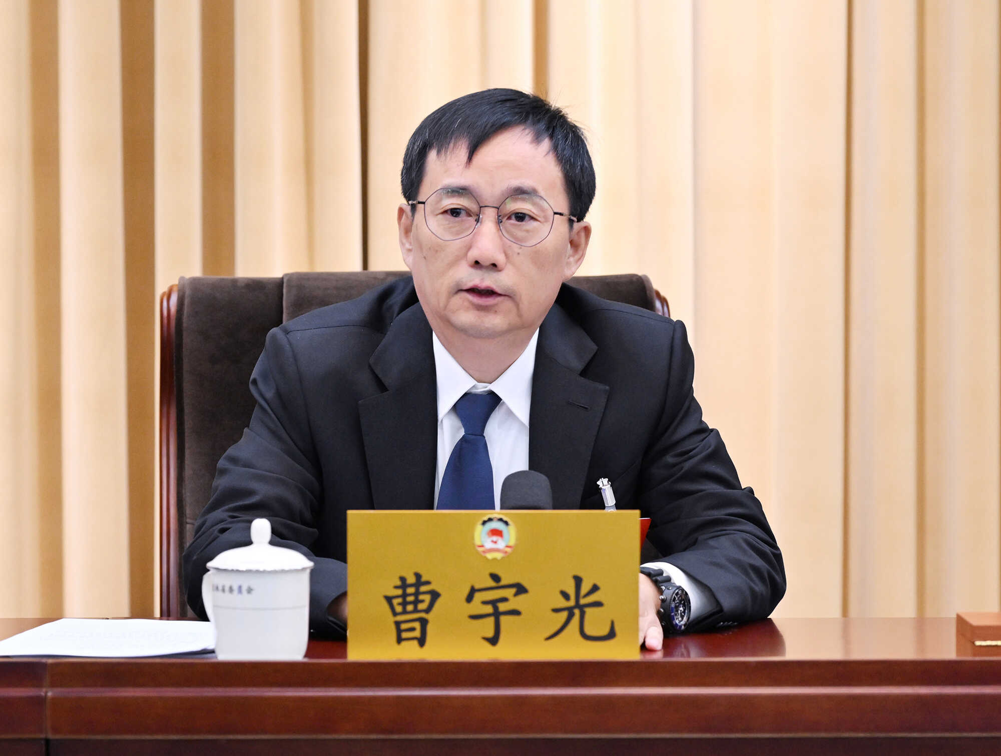 曹宇光主持开幕会,李维斗主持闭幕会。吴靖平、李龙熙、郭乃硕、蔡国伟、秦海涛、高志国出席会议。(李抑嫱/文 徐子茵/图)